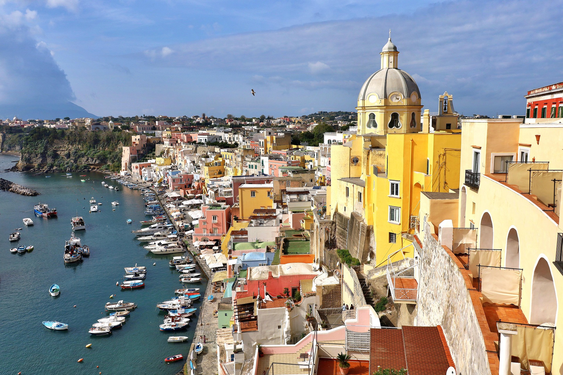 Len o pár kilometrov ďalej vás čaká Procida – najmenší, no azda najfotogenickejší klenot zálivu. Ak je Ischia zelená, Procida je dúhová. Tento ostrov, ktorý si dodnes zachoval svoju autentickú rybársku dušu, vás očarí pastelovými domčekmi prístavu Marina Corricella, ktoré vyzerajú ako rozhádzané kocky cukru. Procida nikam neponáhľa. Je tichá, intímna a nostalgická. Prechádzka jej úzkymi uličkami, kde na šnúrach schne bielizeň a miestni rybári opravujú svoje siete, vás vráti do čias starého Talianska, ktoré poznáme z klasických filmov.